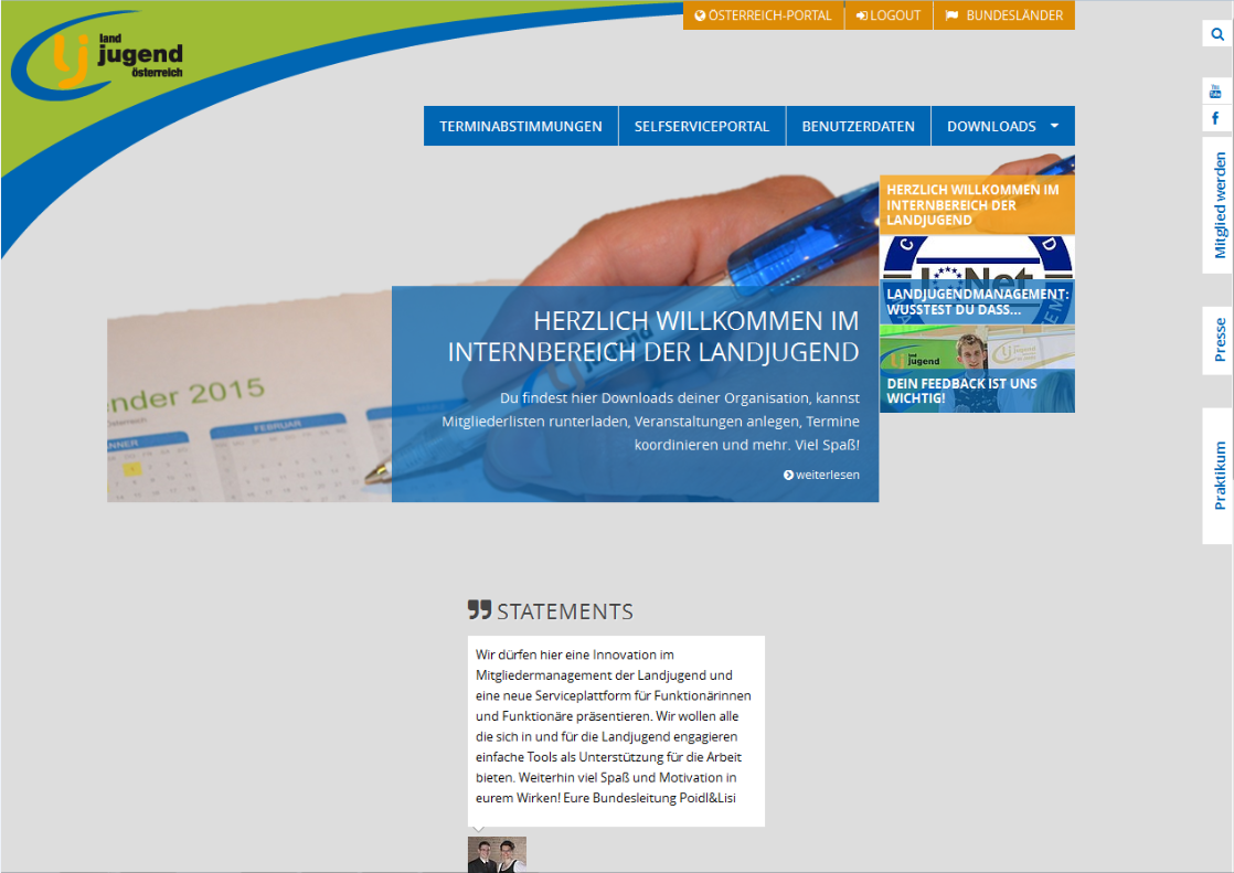 Zusätzlich kann jedes Mitglied mit einem Klick auf das eigene Datenblatt mit sämtlichen Informationen zu Funktionen, Veranstaltungsteilnahmen und LAZ-Punkten einsehen. Terminabstimmungen In diesem Menüpunkt können Termine innerhalb der Landjugendgruppe abgestimmt werden. Einfach ein Klick auf "neue Abstimmung anlegen" eine Terminanfrage oder eine andere Abstimmung erstellen und Mitglieder einladen. Downloads Im Bereich Downloads findest du Dokumente die vorrangig für Landjugendmitglieder und Funktionäre bestimmt sind. Selfserviceportal Dieses Menü wird nur bei Funktionären angezeigt, die berechtigt sind, auf die Datenbank zuzugreifen. Dies sind: · Leiterin und Leiter · Schriftführer/in · Datenbankbeauftragte/r Im Selfserviceportal besteht nun die Möglichkeit… · Daten der Mitglieder einzusehen und zu verändern · neue Mitglieder einzutragen · Veranstaltungen anzulegen Mitgliederdaten bearbeiten Mit Klick auf den Bleistift kannst du die Daten des ausgewählten Mitgliedes bearbeiten. Der Großteil der Mitgliederdaten sollte darin enthalten sein und kann auch geändert werden. Daneben können über das Selfserviceportal noch Adresslisten von Mitgliedern und dem Bezirksvorstand abgerufen werden. Dies ist besonders hilfreich für das Versenden von Einladungen bzw. findet man rasch Telefonnummern von Mitgliedern oder dem Bezirksvorstand. Achtung: Mit der Anmeldung für den Login-Bereich stimmst du der Datenschutz-Verpflichtungserklärung zu. Die Missachtung des Datenschutzes kann den Entzug des Zugangs bzw. eine Anzeige wegen Verletzung des Datenschutzes zur Folge haben.